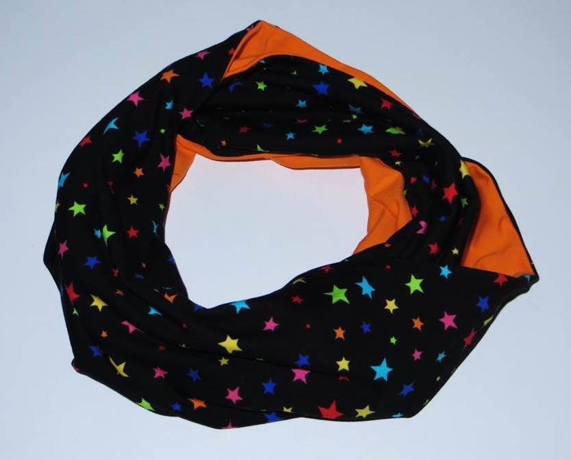 - Loop doppelt Sterne Stars bunt orange schwarz Maße: 30 cm breit und 140 cm lang Material: 95 % Baumwolle, 5 % Elasthan Neupreis: 20,00 € Jetzt nur noch: 12,00 €