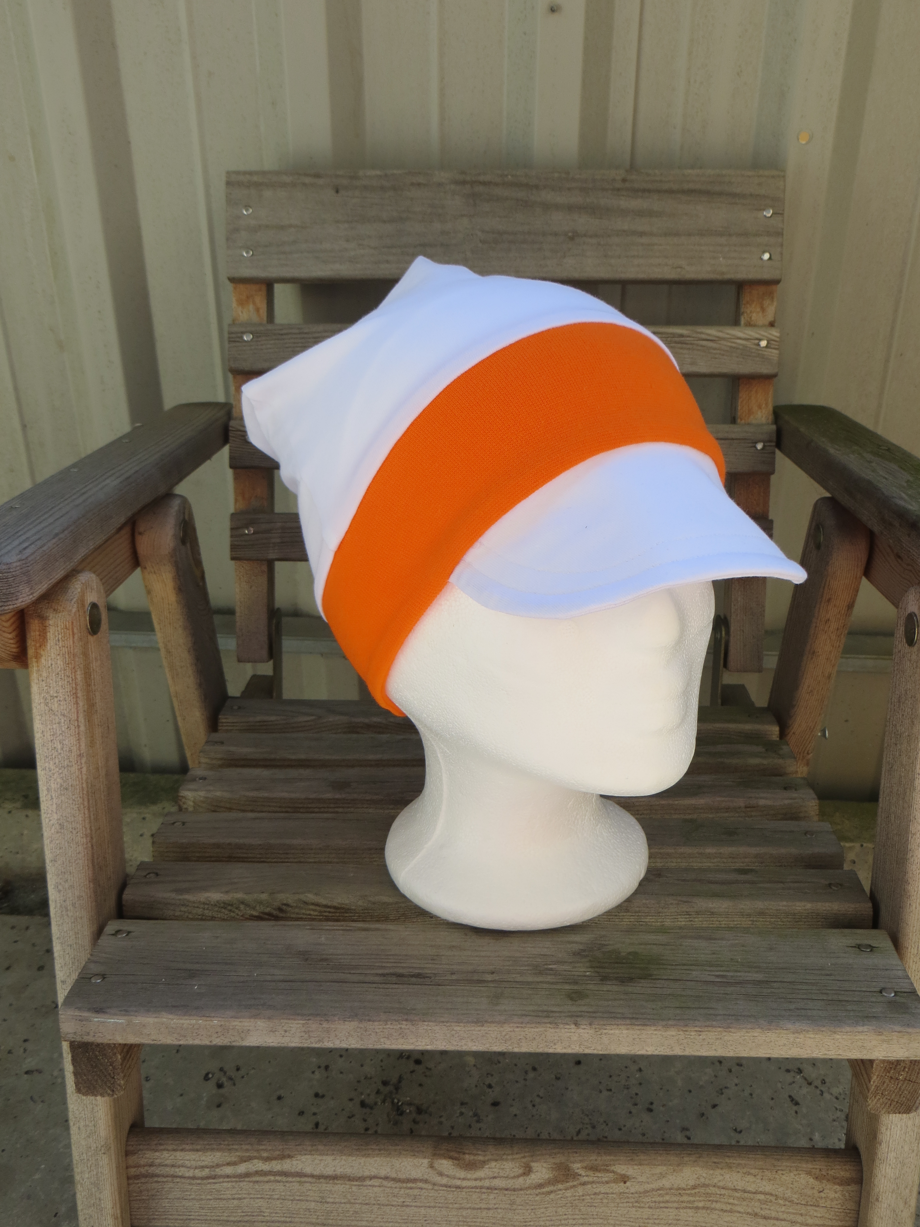 - Schirmmütze weiß mit Bündchen in orange, KU 47-50 Nur noch 10,00 € statt 15,00 €